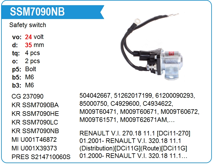 Реле стартера пусковое RVI (SSM7090NB) (ЭЛ3229)