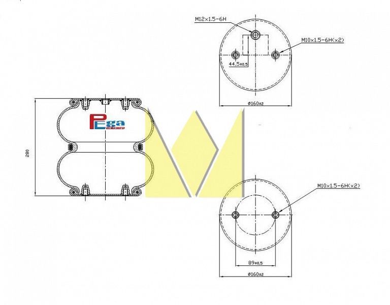Пневморессора Pega гармошка Тонар фитинг м12 крепления параллельно (P302211P25)(П3201)