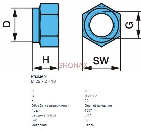 Гайка МВ 22*2,5 (0326004190)(п0326)