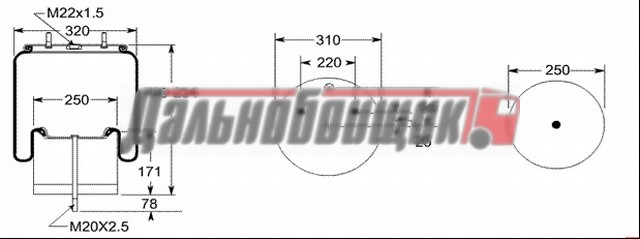 Пневморессора Sampa (сталь. стакан) (SP55725K03)(п1134)