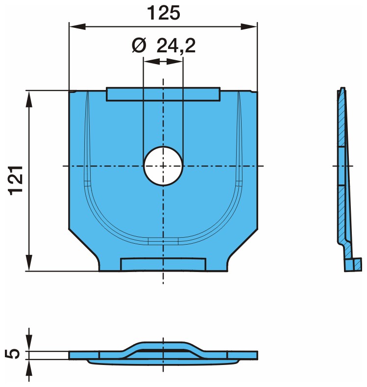 Пластина 125x120x5.0mm/D=24.0mm крепления полурессоры Trailer BPW