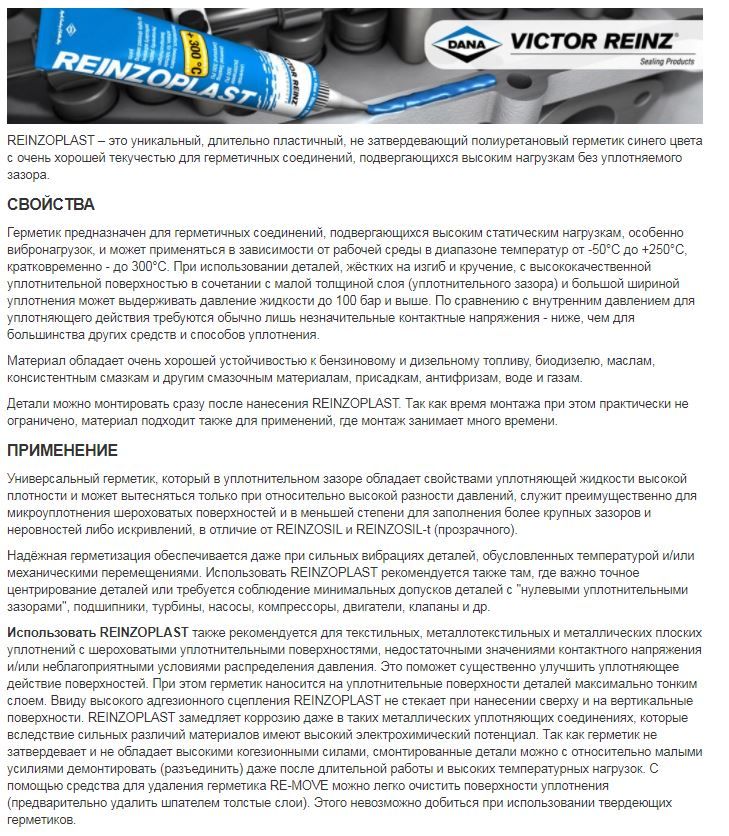Герметик 80ml. высокотемпературный синий неотвердевающий REINZOPLAST (-50/+300 C)(702457120) (р8194)